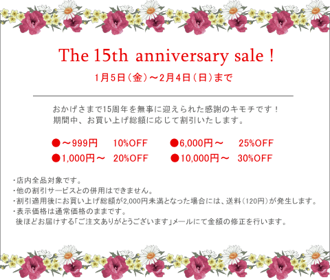 毎年恒例のアニバーサリーセールは、新年早々に行います。