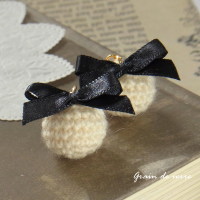 ■リボン×ニットボールのピアス