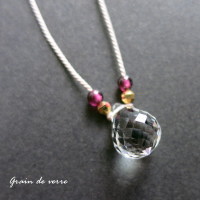 ■水晶×ガーネットのシルクコードネックレス