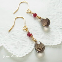 ■スモーキークォーツ×スピネルのピアス