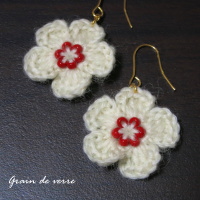 オフホワイトの毛糸に真っ赤なビーズを編み込んだ、