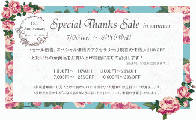 「10th Anniversary ☆ Special Thanks Sale in Summer」、やります♪