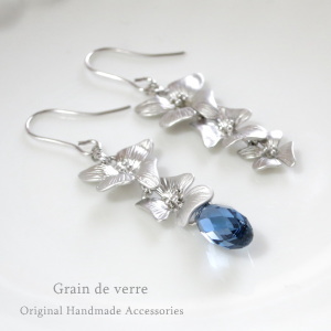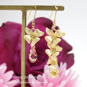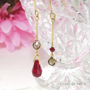 現行スワロフスキーのドロップビーズとともにピアスに仕立てました。