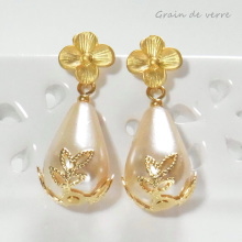 お花のポストピアスや、リーフをあしらったハスケルパールのピアスです。